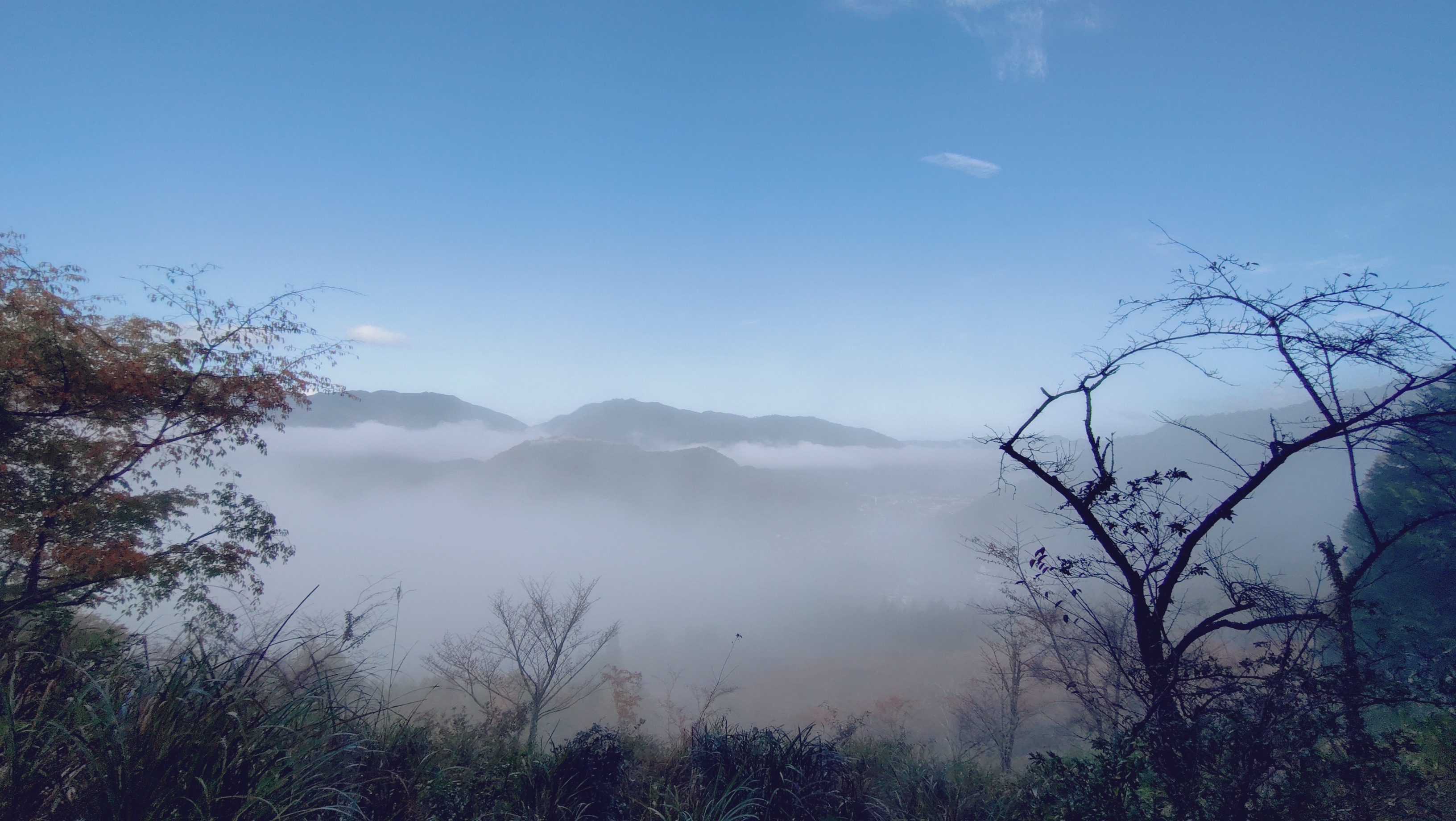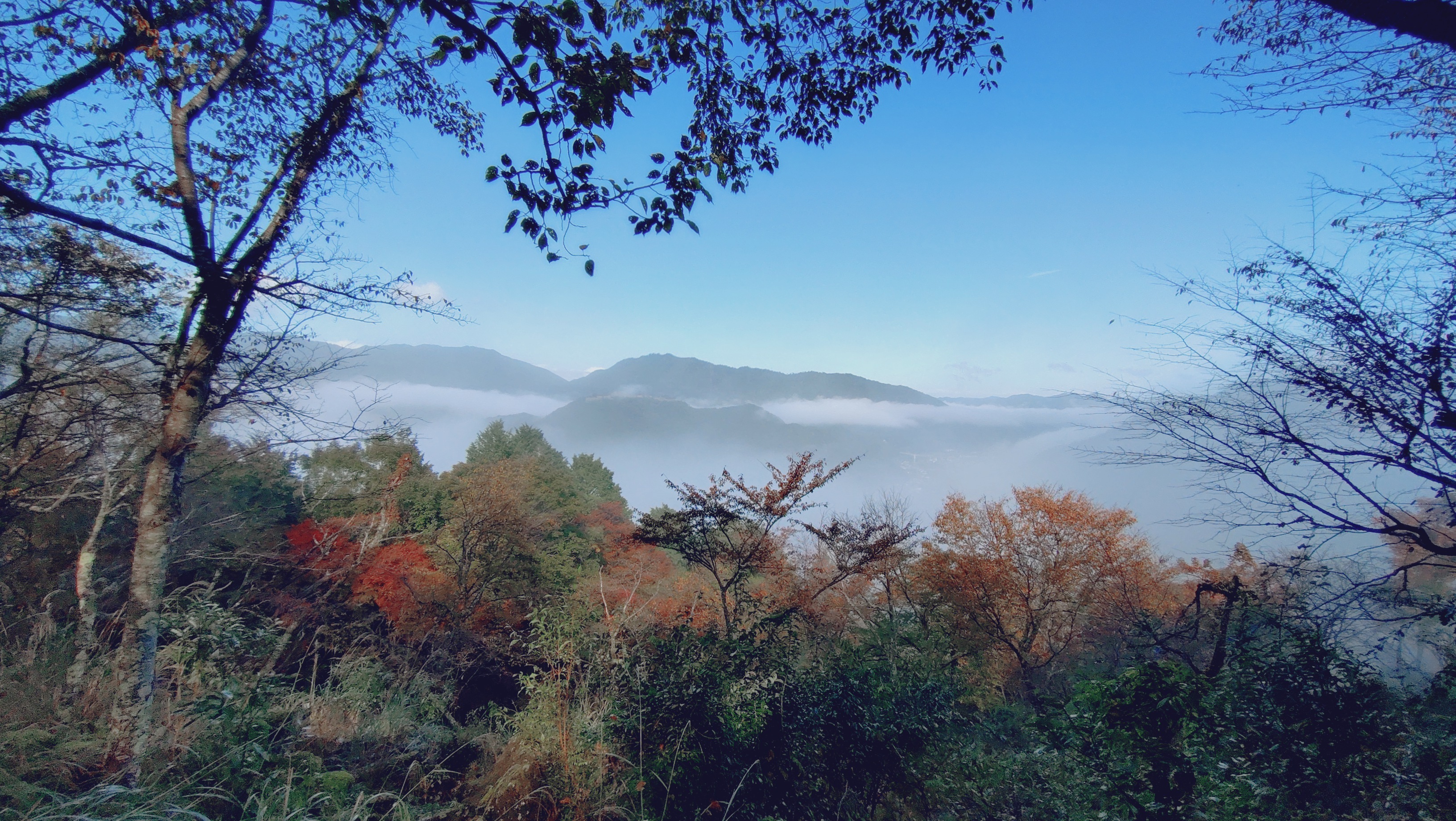 思っていた駐車場が2.2km先であったこと、そこから更に40分の登山道だったことはさておき、真っ白な霧しかない中、山頂に近づくにあたり徐々に晴れていき、ついに木々の合間から雲海が見えて、霧が晴れると見事な日本のマチュピチュが姿を現しました!