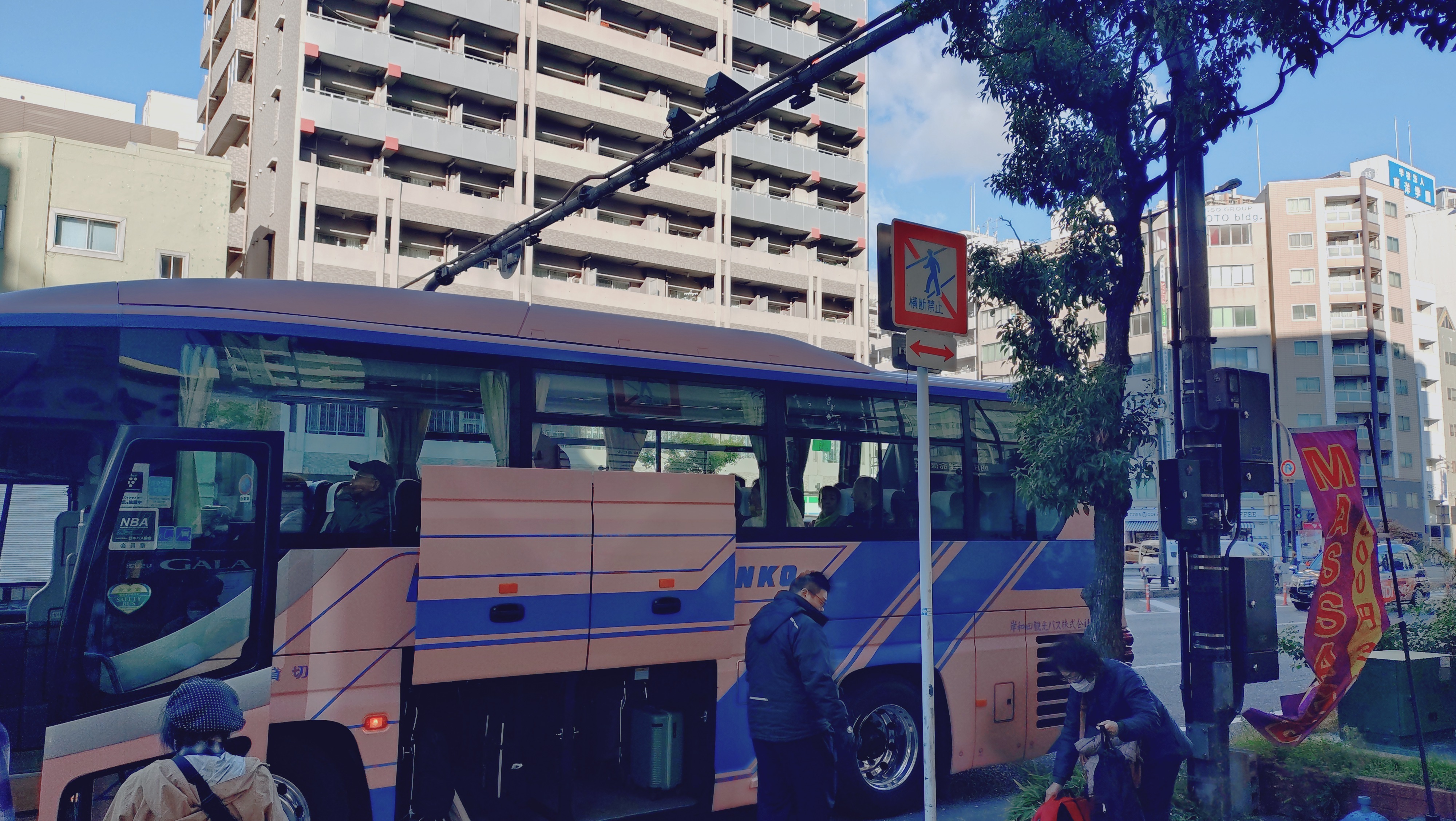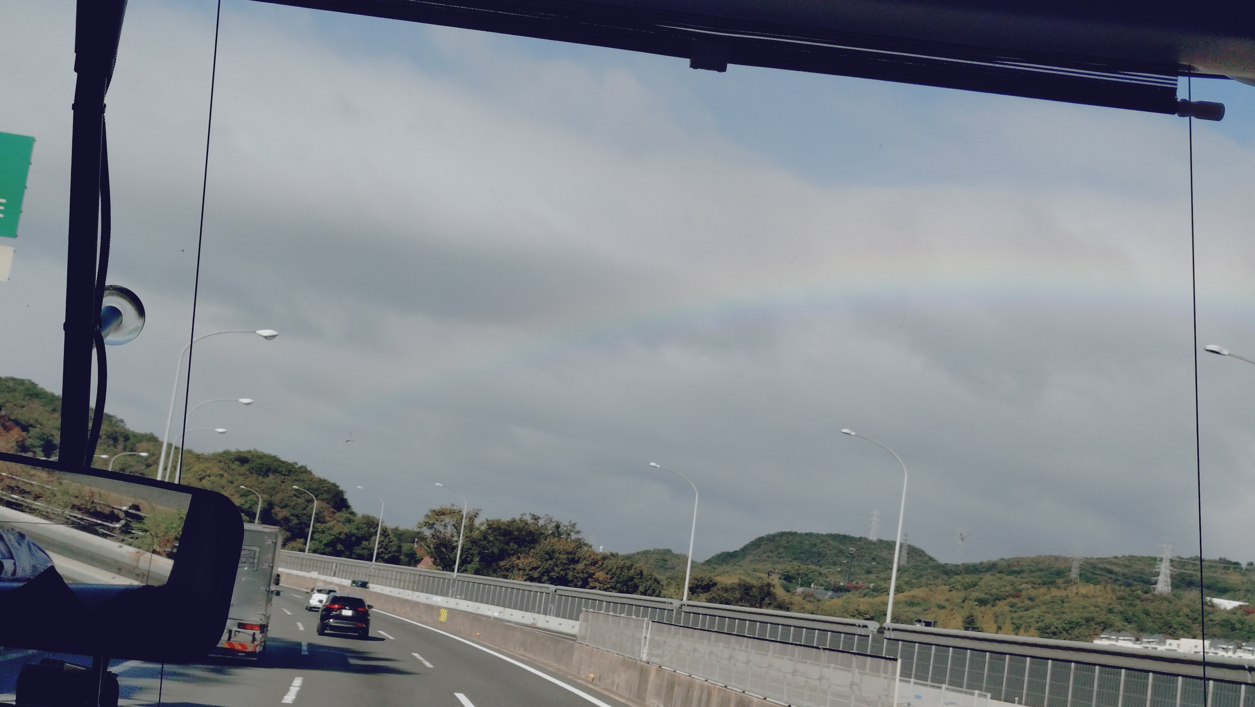 大阪でのお天気はまずまず良好。行きのバス車中からは虹も見れました。